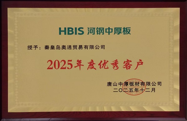 在河鋼集團中厚板板塊的年度評選中,秦皇島奧通貿(mào)易有限公司憑借卓越的服務(wù)能力、堅實的合作基礎(chǔ)以及良好的行業(yè)口碑,從眾多合作伙伴中脫穎而出,被授予“2025年度優(yōu)秀客戶”榮譽稱號。